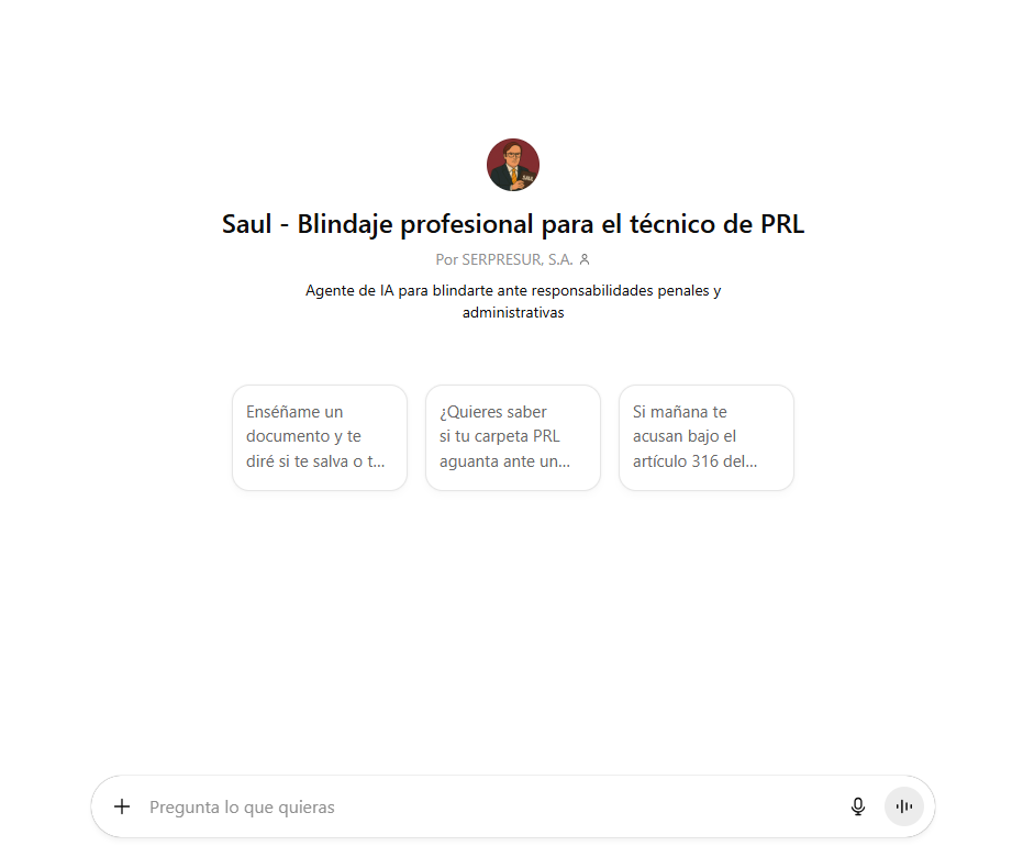 SAUL es un asistente de inteligencia artificial creado especialmente para técnicos de prevención. Te guía paso a paso para blindar tus documentos, detectar fallos y dejarlo todo preparado por si un día tu trabajo acaba en manos de un juez, un inspector o una fiscalía.